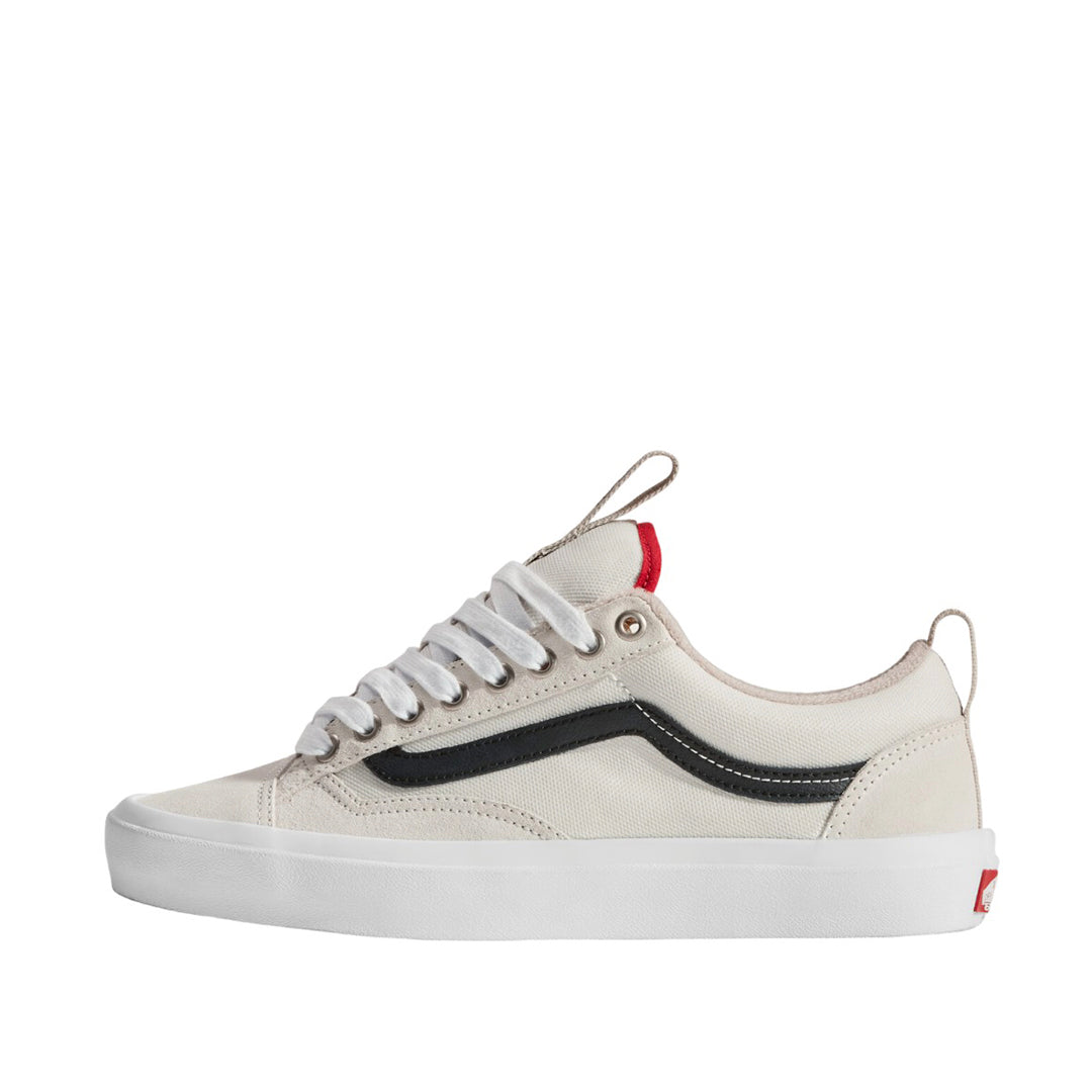 Tennis O Skool SK hombre blanco/gris, de ante y lona con refuerzos DURACAP™. Plantilla PopCush™, suela vulcanizada y banda Sidestripe™ icónica.