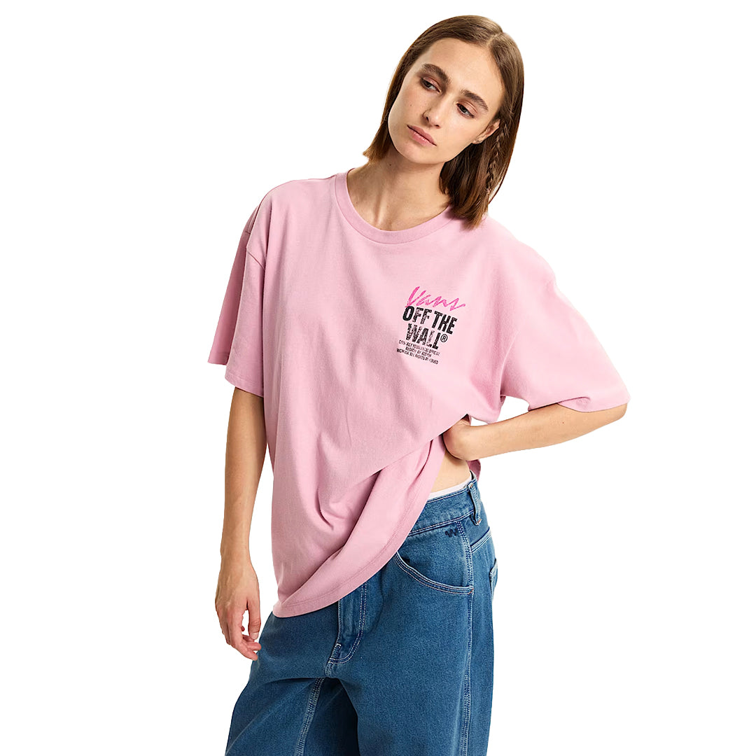 Camiseta Lady Wall para mujer en rosado (Vans). Gráfico Vans “Off The Wall”, ajuste regular y tacto suave para combinar a diario.