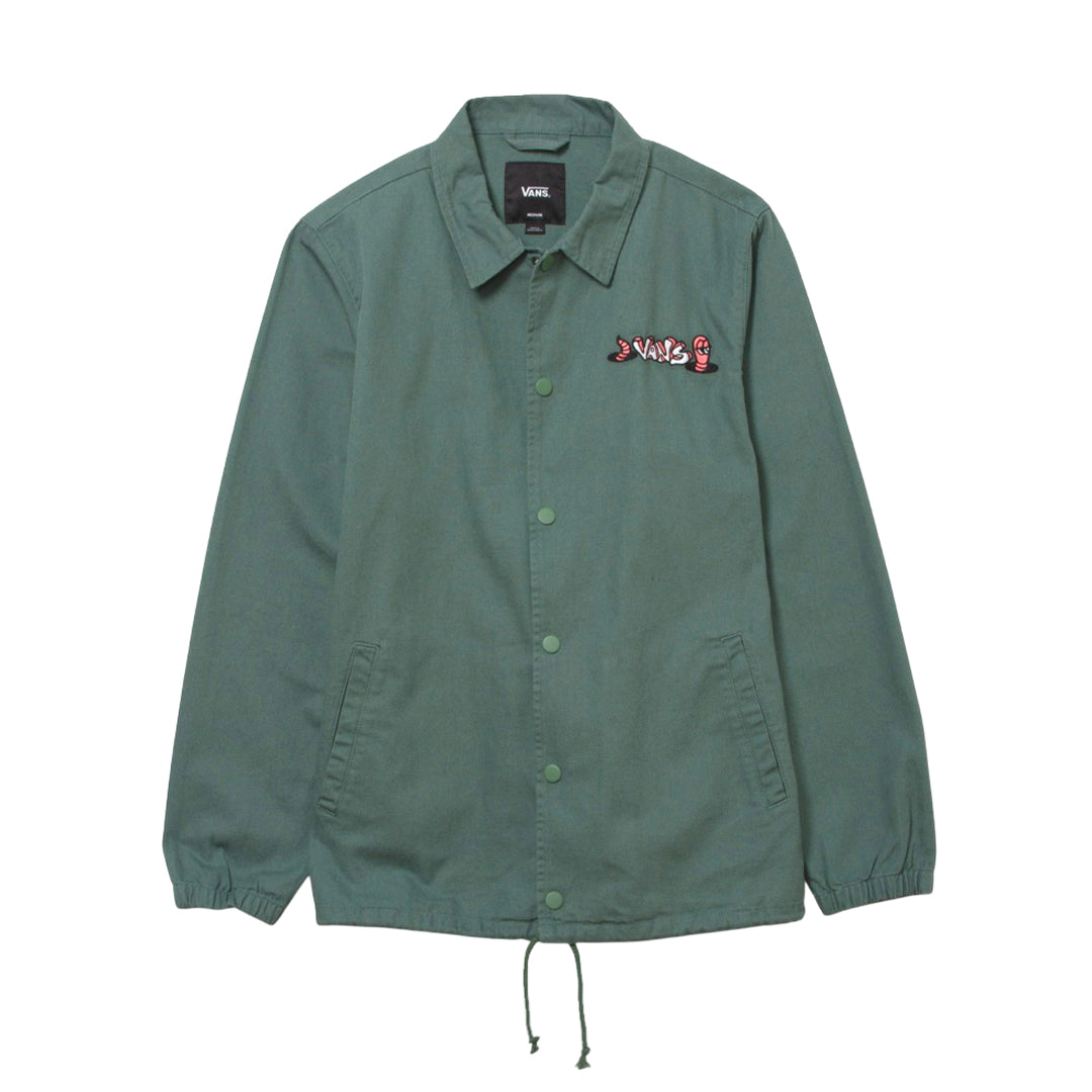 Chaqueta Torry para hombre color verde, marca VANS. Coach jacket ligera con cierre de broches, cuello clásico y bolsillos laterales. Acabado resistente y fácil de combinar.