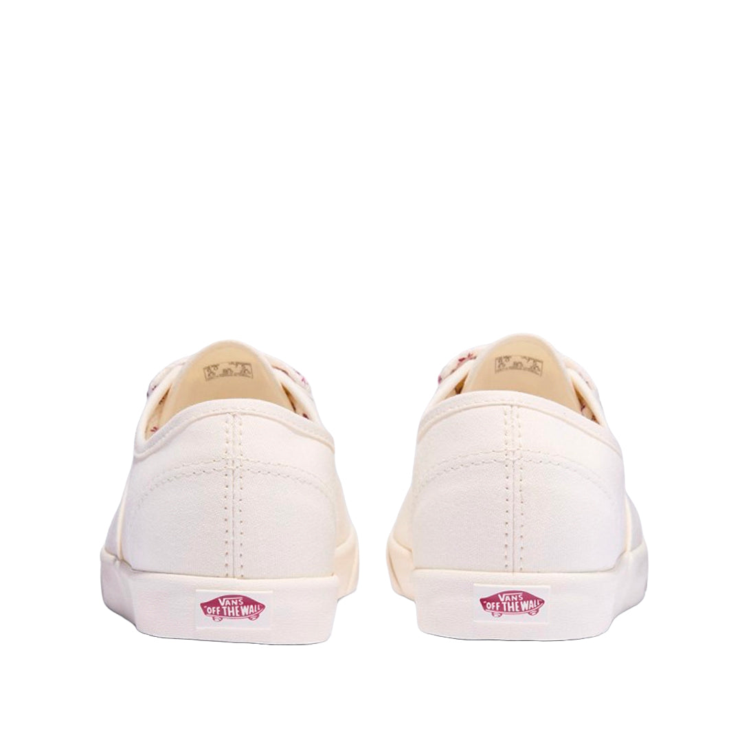 Tennis Auth para mujer en blanco (Vans). Estética clásica con capellada de lona, ojillos metálicos y suela waffle vulcanizada.