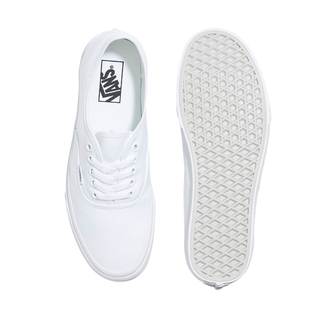 Tennis Authentic unisex blanco de lona lavada con ojales metálicos para ajuste seguro y suela waffle de caucho. Plantilla acolchada para mayor comodidad y estilo icónico Vans con acabado clásico vulcanizado.
