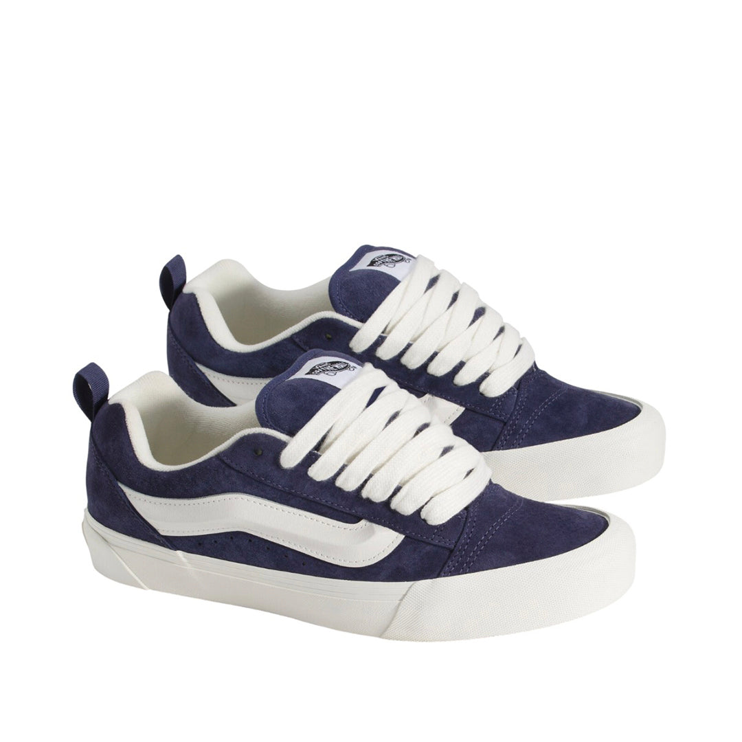 Tennis Knu Skool unisex color navy y blanco, marca VANS. Suede/lona, lengüeta acolchada y Sidestripe™ 3D con cordones anchos.
