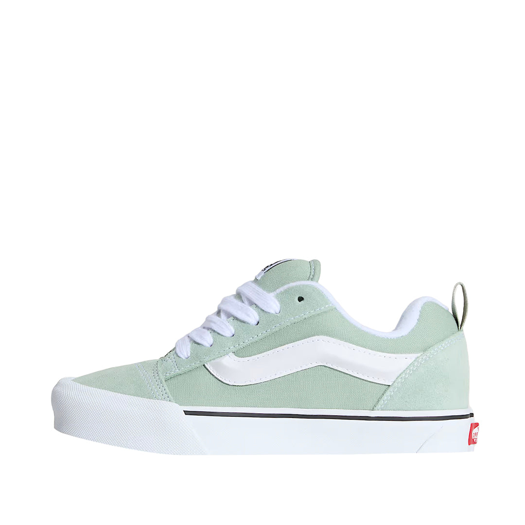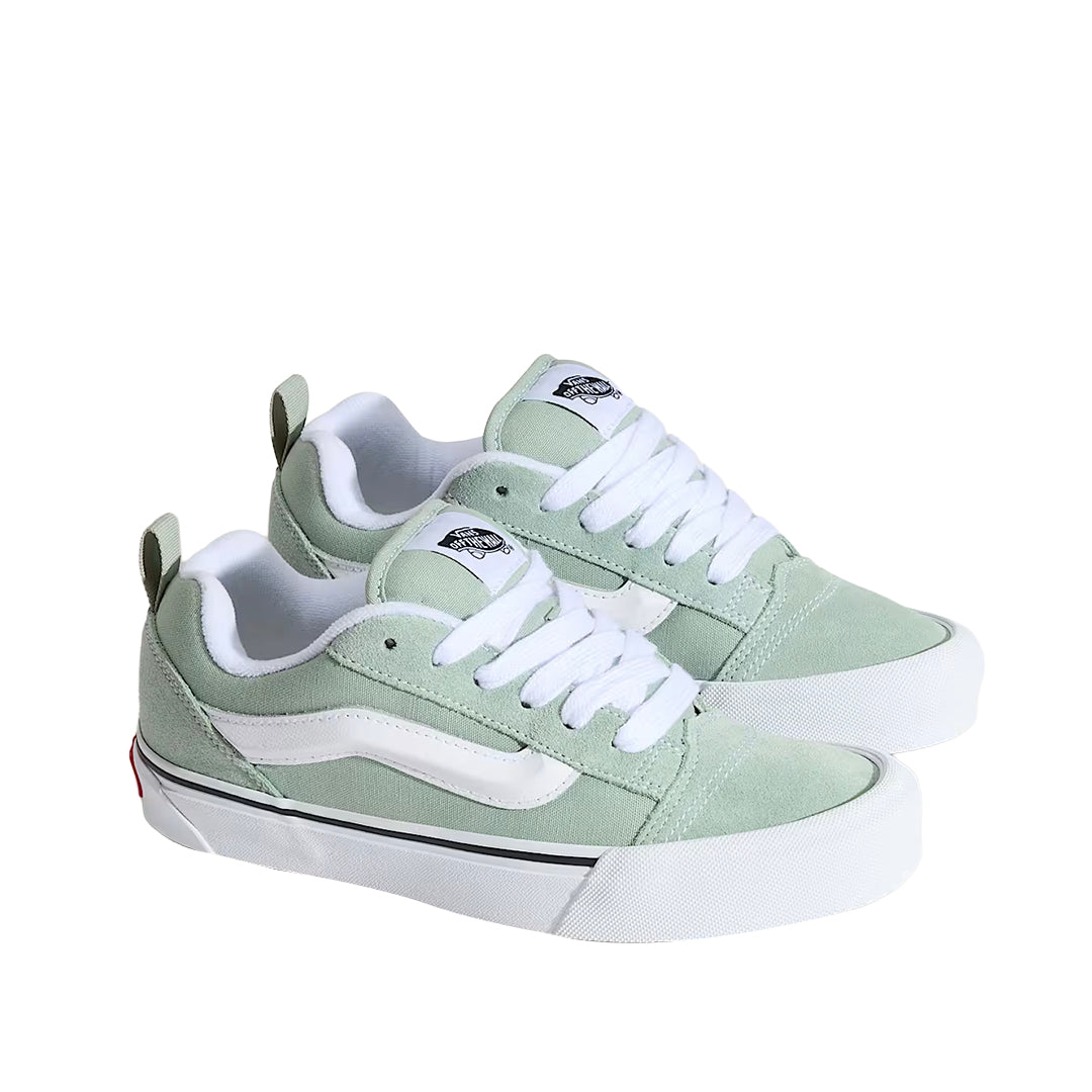Tennis Knu Skool para mujer en verde (Vans). Diseño audaz con volumen, collar acolchado y suela vulcanizada resistente.