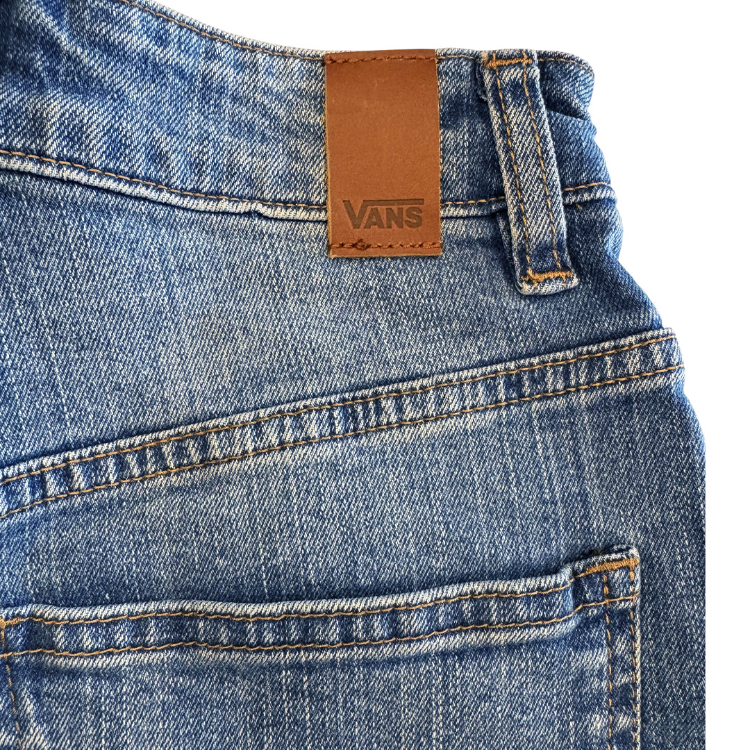 Shorts Cuff para mujer color azul, marca VANS. Denim elástico con cintura ajustable y bolsillos funcionales.