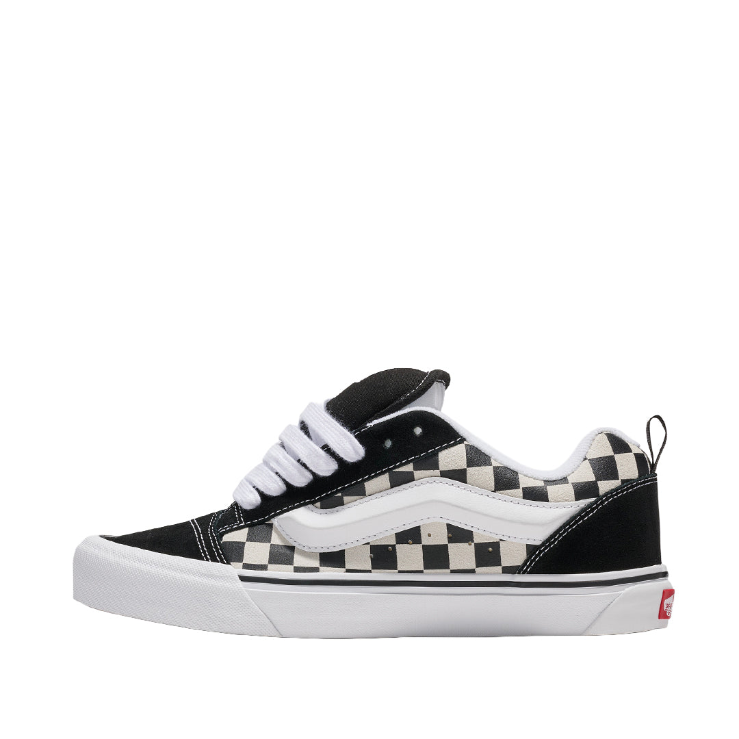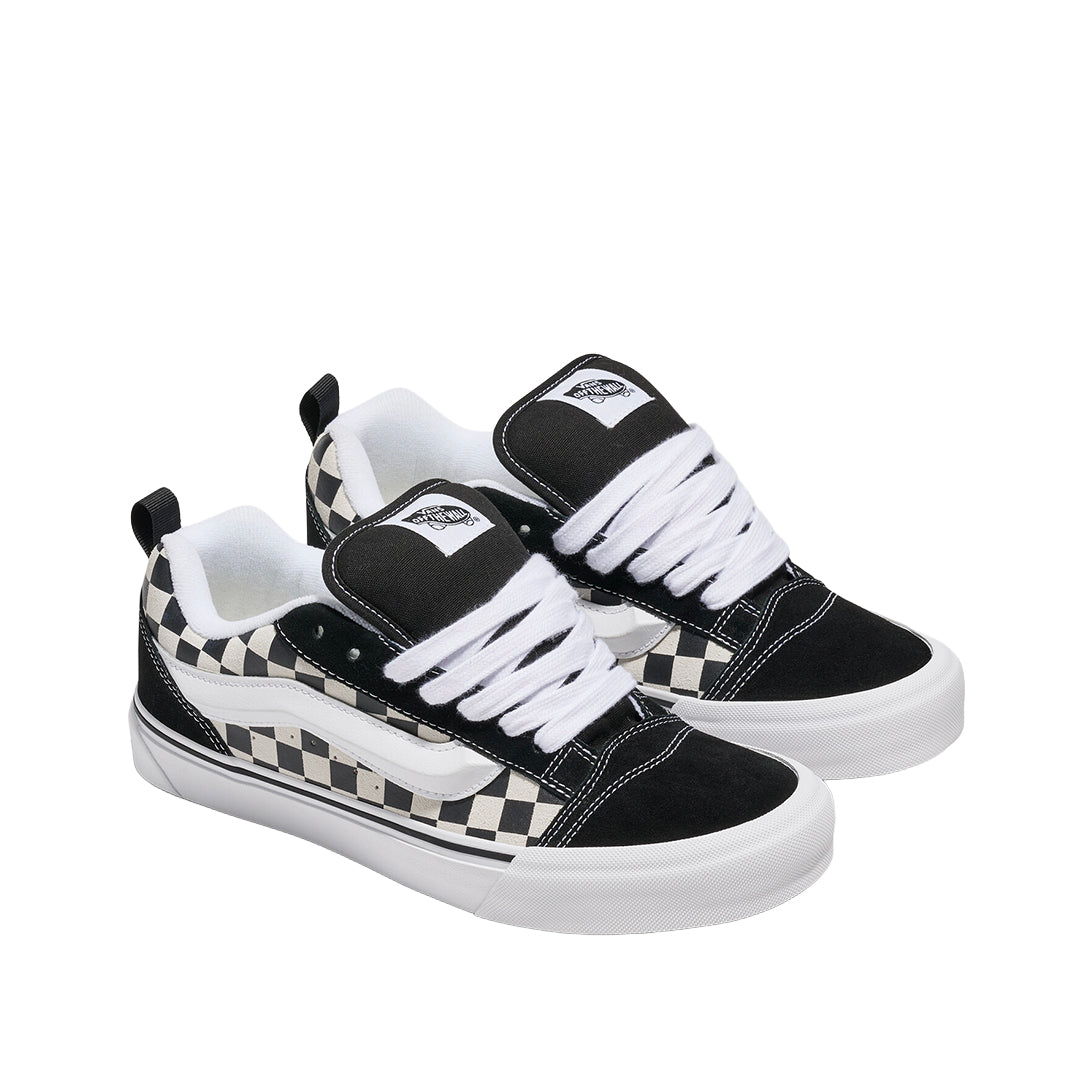 Tennis Knu Skool unisex en negro y blanco (Vans). Silueta chunky inspirada en los 90, suela vulcanizada y lengüeta acolchada para estilo y comodidad.