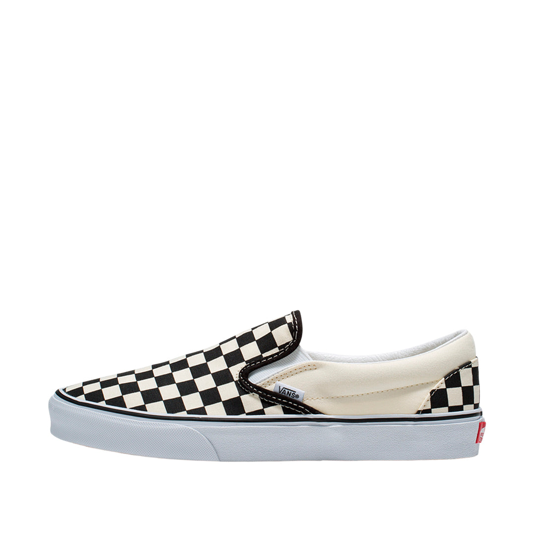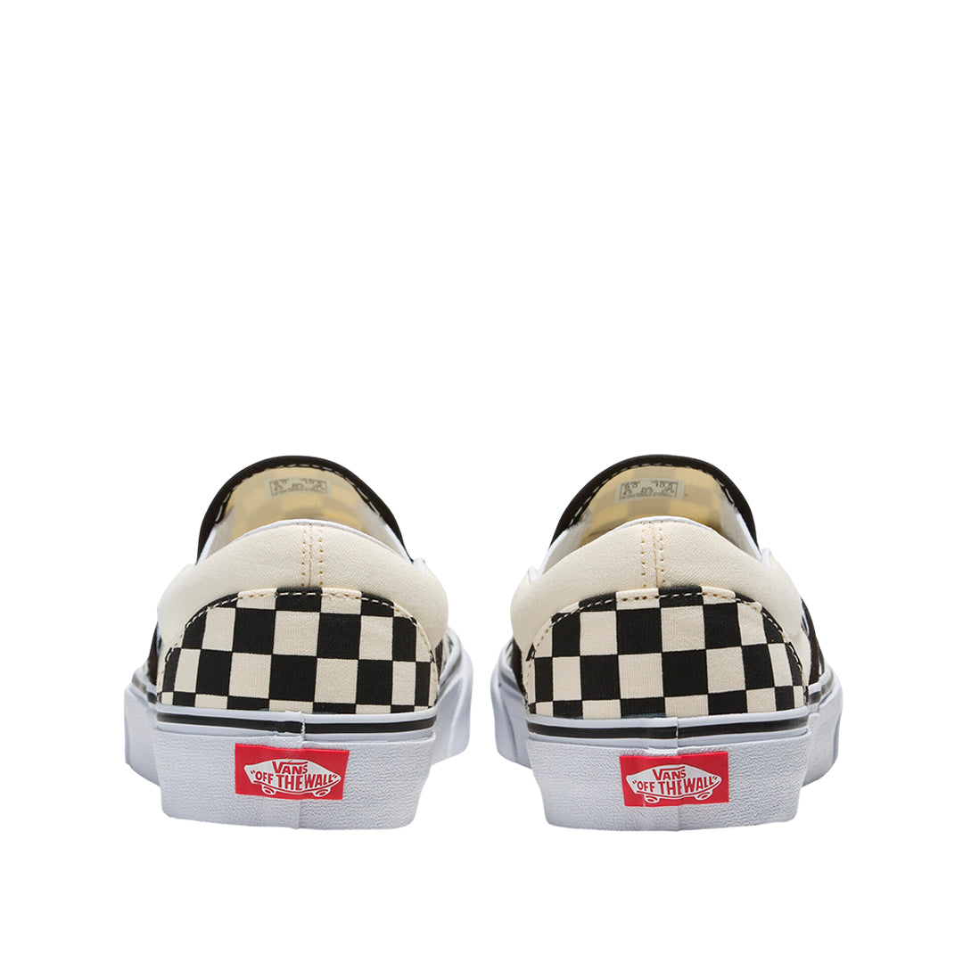 Tennis Slip-On unisex blanco y negro, confeccionados en lona resistente con laterales elásticos para fácil ajuste. Cuentan con plantilla acolchada, interior textil y suela waffle de caucho vulcanizado que brinda tracción y comodidad en cada paso.