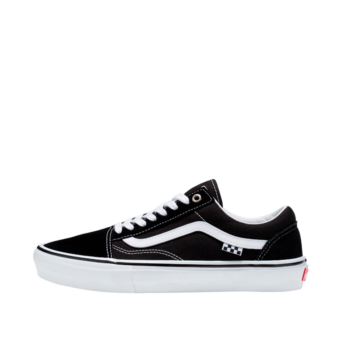 Tennis Old Skool SK para hombre color negro y blanco, diseñados para skateboarding. Fabricados en lona y ante con refuerzo DuraCap™, suela SickStick™ y plantilla PopCush™ para amortiguación. Ajuste seguro gracias a su cierre de cordones.