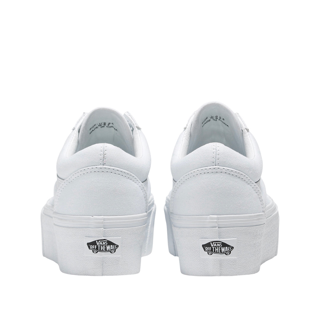Tennis Old Skool D para mujer color blanco, el modelo Stackform eleva el diseño clásico con una plataforma de 34 mm. Confeccionados en gamuza y lona, incluyen collares acolchados y la icónica suela waffle para máximo confort.