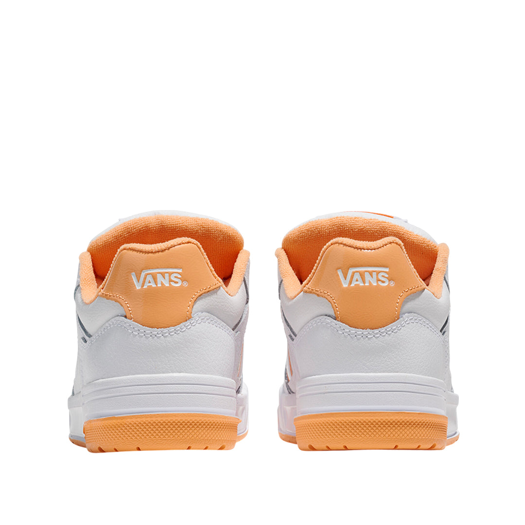 Tennis Upland unisex color blanco, inspirados en los diseños chunky de los 90, presentan una silueta robusta con parte superior en cuero y materiales sintéticos. Incorporan cuello acolchado, suela tipo cupsole y el icónico logo Flying V. Ofrecen soporte, amortiguación y un look retro ideal para el uso diario.