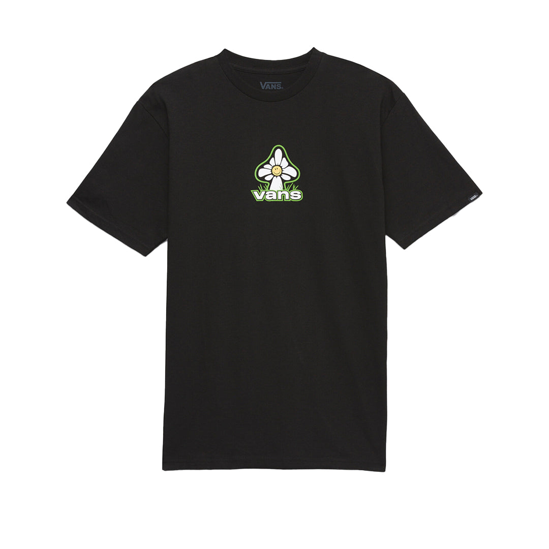 Camiseta Mushbloom para hombre en negro, algodón suave con gráfico floral “Mushbloom”, cuello rib y corte clásico.