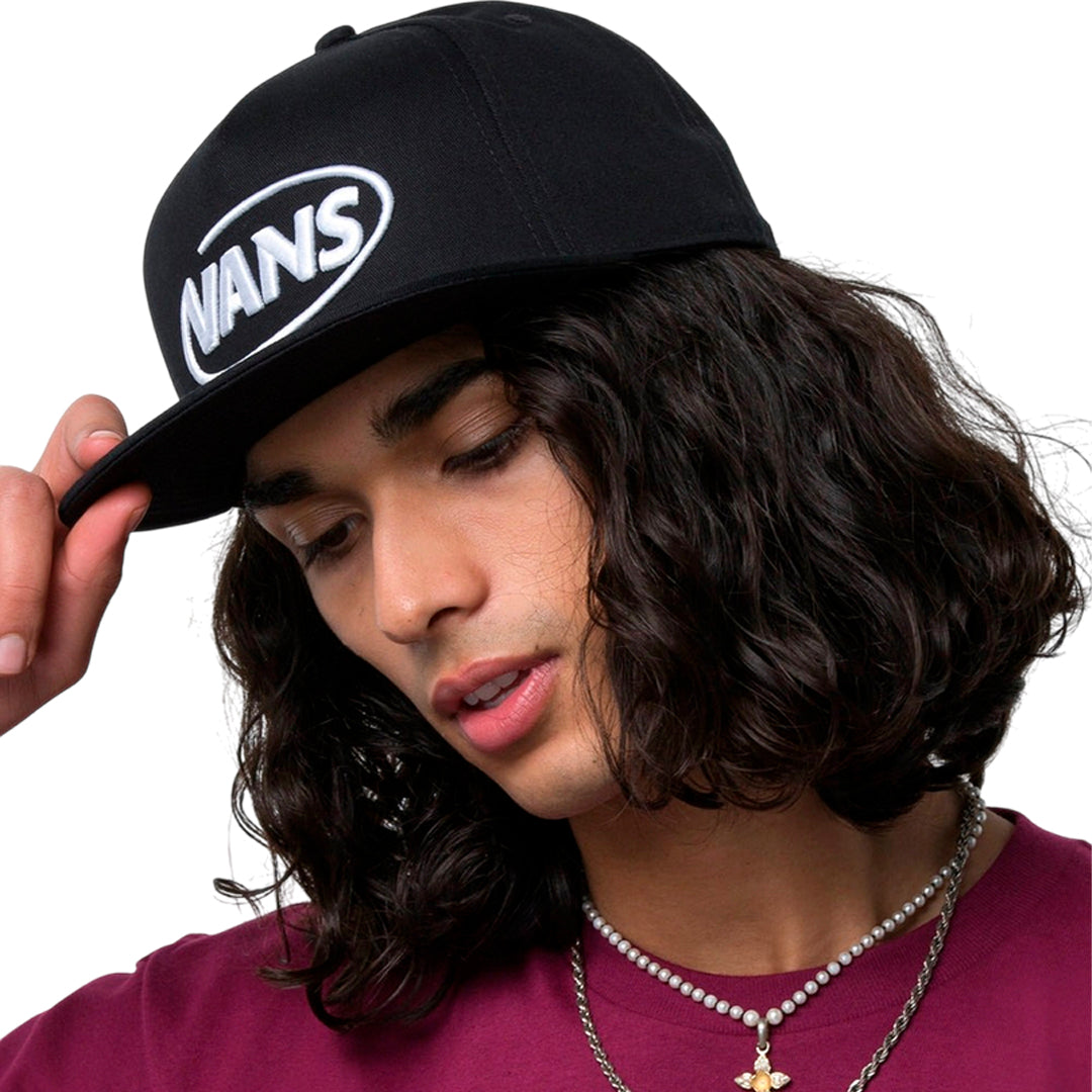 Gorra Def Hi unisex color negro, marca VANS. Snapback de 5 paneles con logo en relieve en el frontal y ajuste trasero.