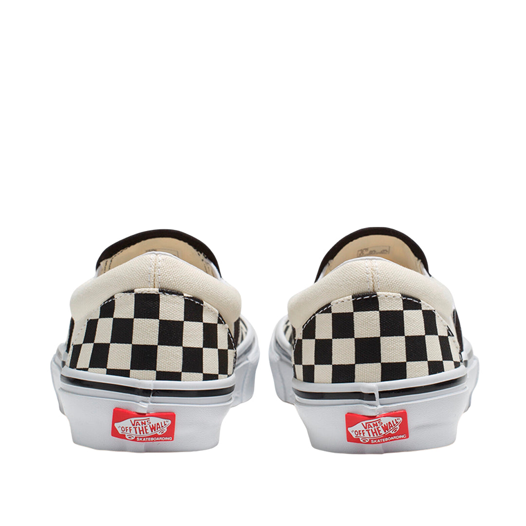 Tennis Slip-On SK hombre blanco/negro, diseñados para skate con tecnologías PopCush™, DuraCap™ y SickStick™. Exterior de ante y lona, talón moldeado y lengüeta con correas internas para ajuste seguro.