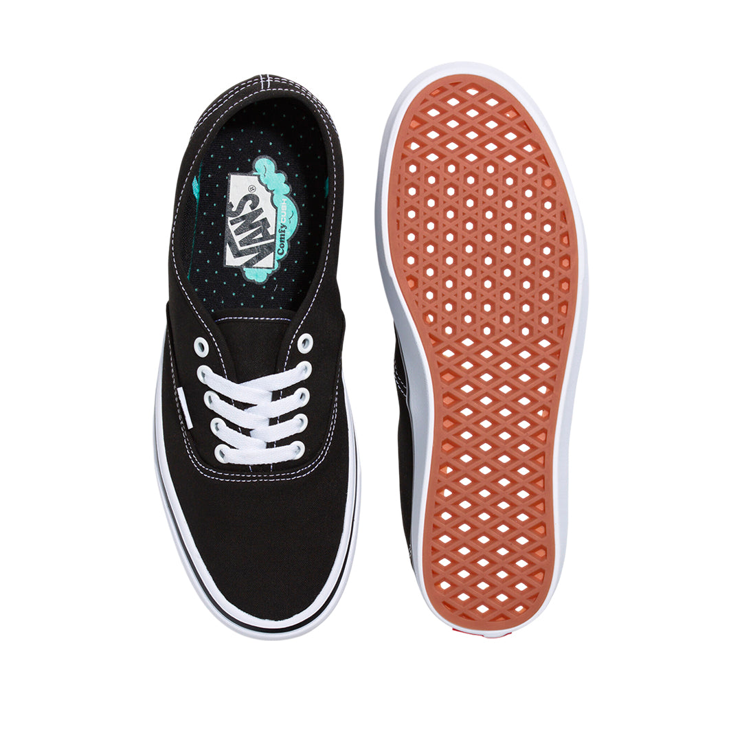 Tennis Auth unisex color negro y blanco, marca VANS. Diseño vulcanizado con construcción co-moldeada de espuma y caucho, suela waffle y forro absorbente. Gran confort diario.