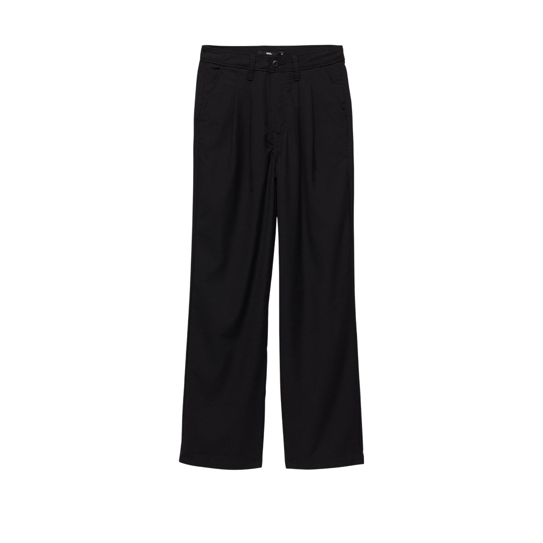 Pantalón Alder para mujer color negro. Confeccionado en 80% poliéster y 20% viscosa, presenta pernera ancha y pinzas frontales que estilizan la silueta. Su caída fluida brinda comodidad y elegancia casual.
