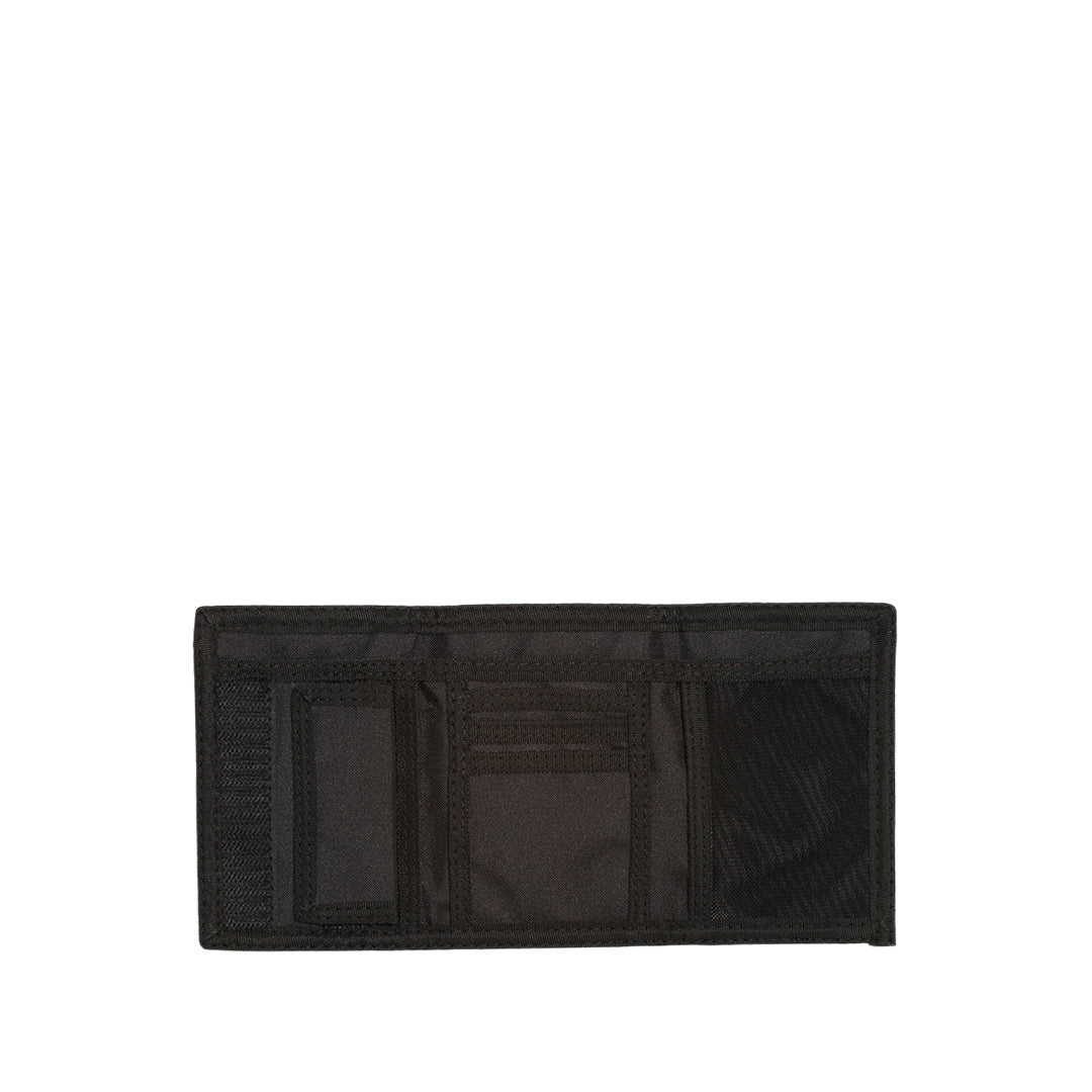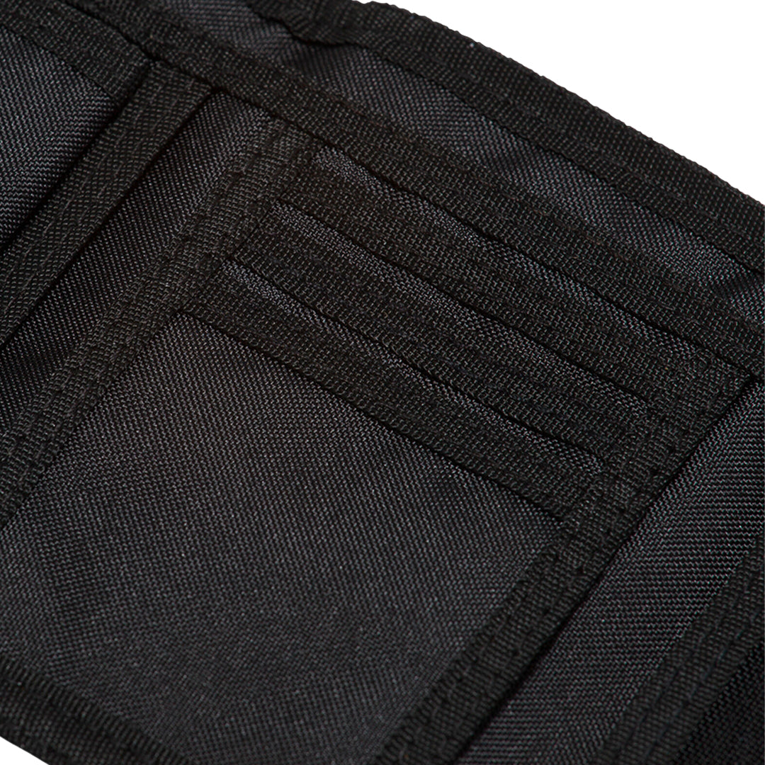Billetera Camo unisex verde/negro, marca VANS. 100% poliéster, cierre velcro, 4.75"×3". Compartimento de billetes, tarjeteros, ventana ID y monedero.